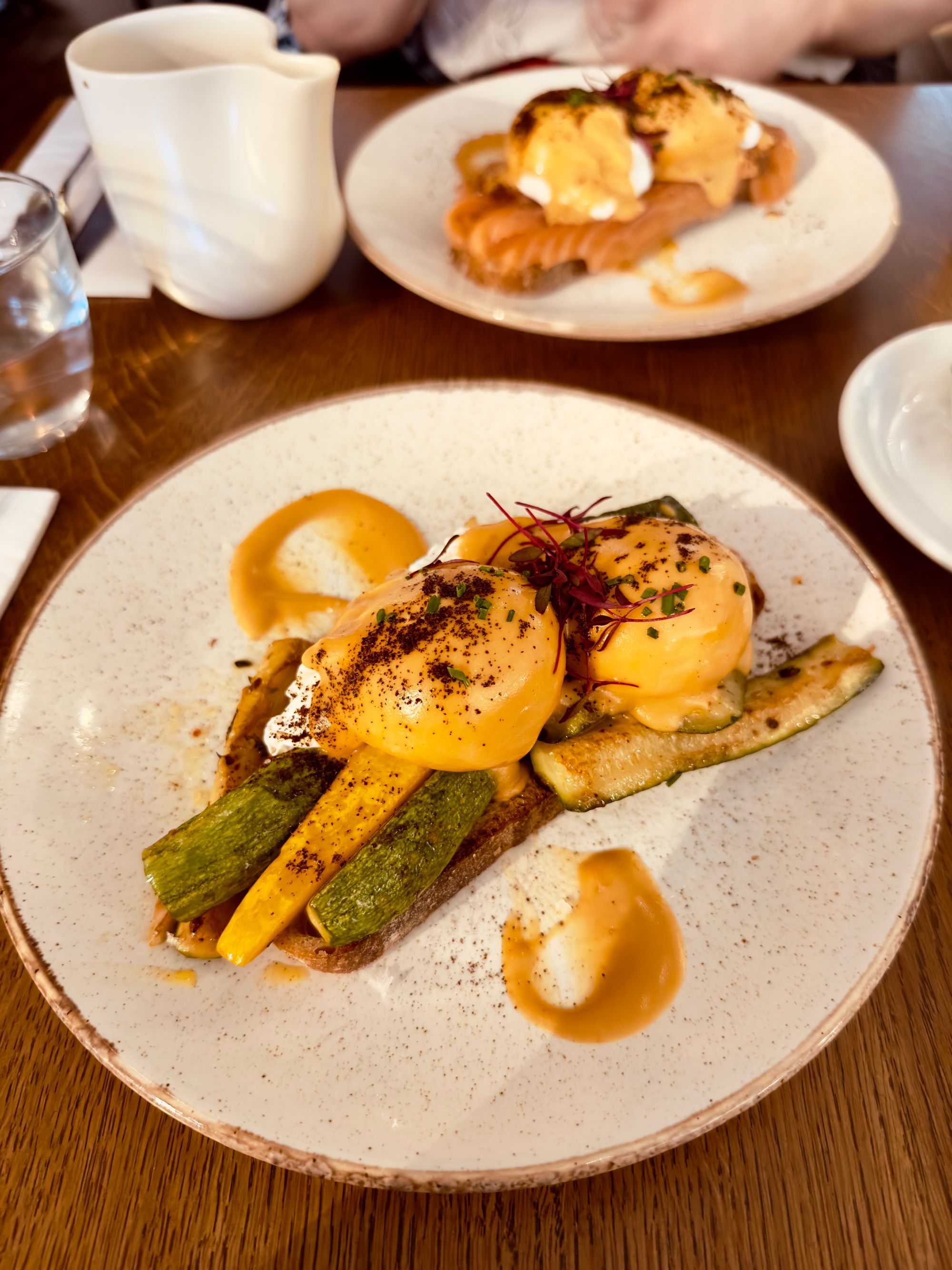 While we were there we tried Prufrock’s eggs benedict (“eggs benny”, as they call it), which they spin by infusing the hollandaise sauce with espresso. It is a really fun twist to the classic dish, and my veggie version (with courgette) was really creamy and lovely. The filter coffee, a washed Kenyan, still tasted sweet and fruity even after chugging two shots of strong and bold espresso.
