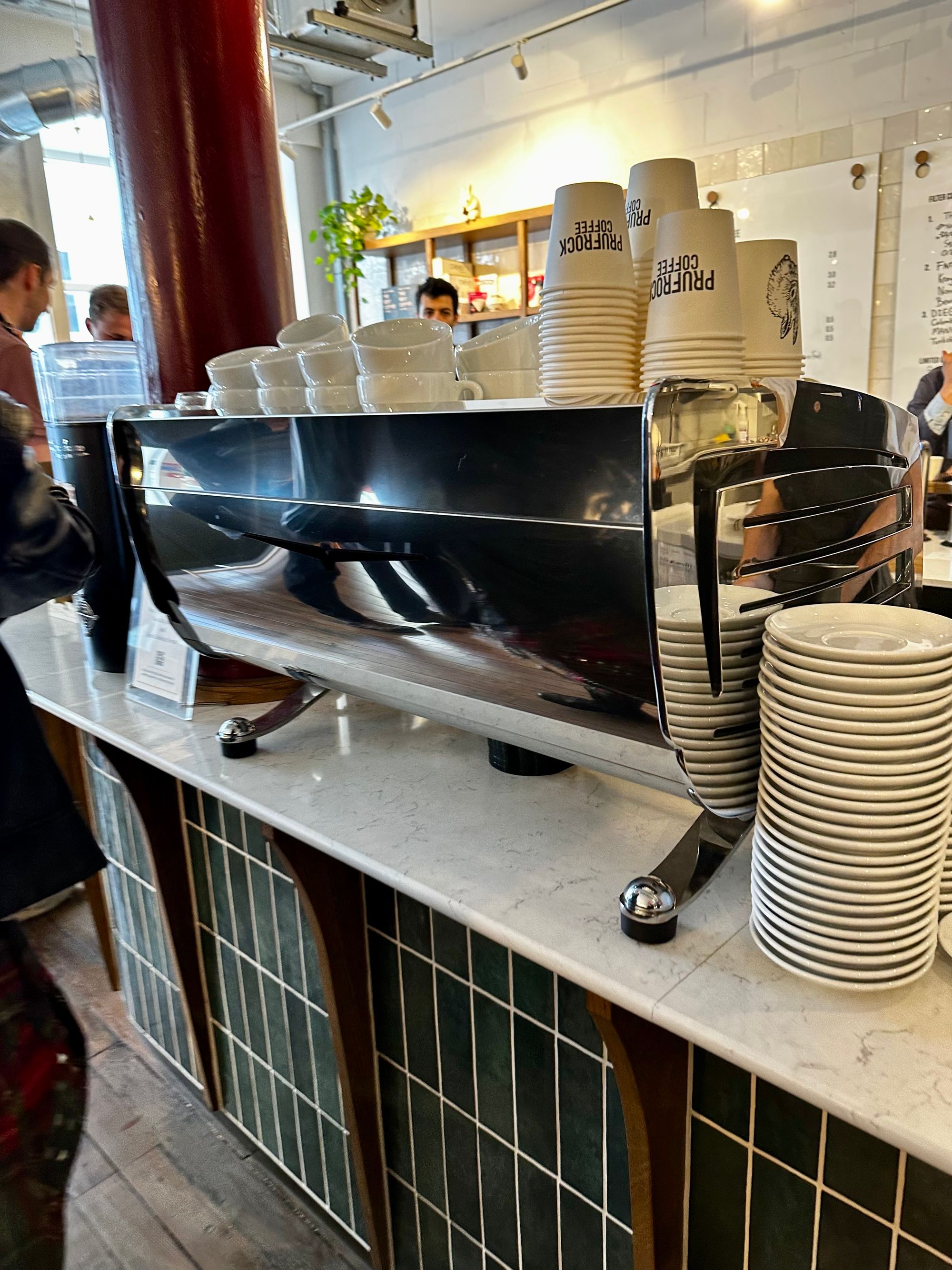 Visiting Prufrock Coffee on Leather Lane to experience two state-of-the-art espressos; modern style on modern hardware, versus classic Italian style on restored vintage hardware.